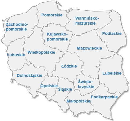 zachodniopomorskie pomorskie warmi?sko-mazurskie podlaskie mazowieckie kujawsko-pomorskie wielkopolskie łódzkie lubelskie świętokrzyskie podkarpackie lubuskie dolnośląskie opolskie śląskie małopolskie
